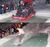 500 kg schwerer Motorhaubenschlitten gleitet über riesiges Wasserbecken