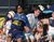 Die Mädchen ringen Burschen um einen Ball nieder!