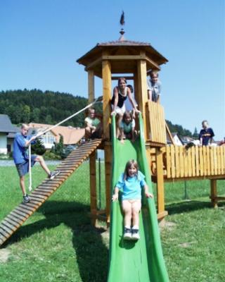 sind die Kinder. Am Kletterturm mit der großen Rutsche können sie sich