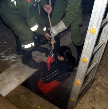 Deckenöffnung zugänglich war, zu retten. Hiebei waren die Atemschutztrupps besonders gefordert, da die Bergung nur