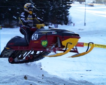 300-PS-starken Ski-Doos zogen die Läufer bei klirrender Kälte auf der