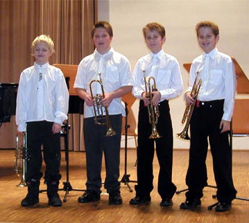 LEMBACH: ANDREAS und MARKUS HOFER (11 J.), SANRO MAYRHOFER (10 J.) und ANDREAS AICHINGER (10 J.)stellten sich in einem Trompetenensemble einer hochkarätigen Jury mit Landeskapellmeisterstellvertreter Klaus Rappl an der Spitze.