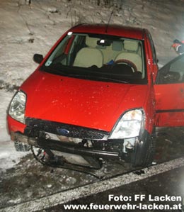 Einer jungen Frau waren um ca. 19.30 Uhr die Witterungsverhältnisse zum Verhängnis geworden. Die Straße war aufgrund fallender Temperaturen plötzlich eisglatt geworden und machte das Fahren natürlich dementsprechend gefährlich. Die Lenkerin kam bei diesen Verhältnissen mit ihrem Fahrzeug ins Schleudern und touchierte dabei mit einem entgegenkommenden Fahrzeug. Schließlich überschlug sich das Auto und kam im Seitengraben zum Stillstand. Glücklicherweise überstanden alle beteiligten Personen diesen Unfall unverletzt.