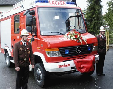 LACKEN: Am Sonntag, den 23. Mai 2004, war es endlich soweit. Das neue Löschfahrzeug der Freiwilligen Feuerwehr Lacken wurde im Rahmen einer Florianimesse