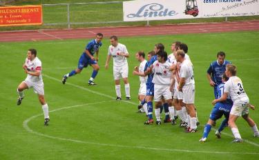 In der 33. Minute kann sich der Gmundner Torhüter Hütter erstmals nach einem Freistoss von Hirnschrodt auszeichnen – er kann den Kopfball von Kukacka noch über die Latte drehen.