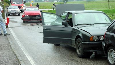 Drei Fahrzeuge waren auf der B 131 in der Ortschaft Bergheim zusammengestoßen.