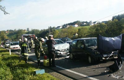 jedoch nicht mehr rechtzeitig bremsen. Es entstand ein Auffahrunfall, in dem