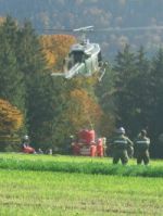 Gott sei Dank nicht Wirklichkeit aber eine große Herausforderung war die Suche nach weiteren acht, zum Teil schwer verletzten, Kindern. Den Feuerwehrmännern sowie der Rettungshundebrigade mit 14 Suchhunden wurde in dem unwegsamen Gelände alles abverlangt. Nach der Bergung der Kinder erfolgte die Übergabe an das Roten Kreuz mit Gemeindearzt Fürst und Schmöller zur Erstversorgung.