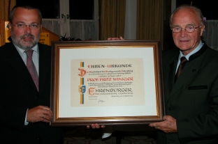 Bürgermeister Franz Saxinger überreichte die Ehrenbürgerurkunde an Professor Fritz Winkler.