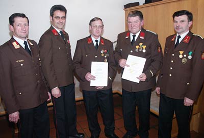 Für die 40-jährige verdienstvolle Tätigkeit auf dem Gebiet des Feuerwehrwesens wurde die Oö. Feuerwehr-Dienstmedaille an Josef Kroiss und Franz Lorenz verliehen.