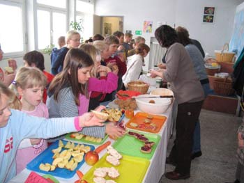 Für eine Woche bereiteten der Elternverein und die Schulklassen mit ihren Lehrkräften Jausenbrote, Obst und Gemüse für die ganze Schule vor.
