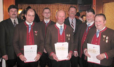 Die „Silberne Verdienstmedaille“ für 25 jährige Mitgliedschaft erhielt Karl Moser aus Altenhof. Eine sicherlich selten vergebene Ehrung erhielten gleich zwei engagierte Musiker für ihre 50 jährige aktive Mitgliedschaft bei der Altenhofer Musikkapelle. Für ihre langjährige Leidenschaft zur Musik wurden Karl Haider aus Ratzesberg und Anton Kehrer aus Gerastorf mit dem „Blasmusik-Ehrenzeichen in Gold“ ausgezeichnet. Für ihren Einsatz und ihre vorbildliche Kameradschaft gebührt ihnen ein großes Lob.