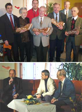 SARLEINSBACH:Das 20-jährige Bestehen war für Leiter Siegfried Pfleger Anlass gemeinsam mit den Bewohnern und den MitarbeiterInnen die Entwicklung der vergangenen 20 Jahre Revue passieren zu lassen. Die Ergebnisse daraus wurden den zahlreichen Gratulanten bei der Jubiläumsfeier am vergangenen Freitag unter dem Motto „Spuren im Haus“ präsentiert. Jeder Bewohner und Mitarbeiter der vergangenen 20 Jahre bekam eine bunte Fußspur, so wurden rund 270 Spuren im Haus ausgestellt. Zu Beginn der Festveranstaltung wurden Bewohner der ersten Stunde interviewt und erzählten, wie sie die Übersiedlung vom Wagner-Jauregg Krankenhaus in das beschauliche Haus am Platz in Erinnerung haben. „Geschneit hat´s soviel damals im März, genauso wie dieses Jahr. Als mich nach einem 9 ½ - jährigen Aufenthalt im Wagner-Jauregg KH dann der damalige Leiter von St Severin August Eckerstorfer hierher brachte, war die Freude groß - ich hatte das erste Mal in meinem Leben mein eigenes Zimmer“, berichtete Rosa W. Der Bewohner Erwin A. hat sein Zuhause ebenso in Sarleinsbach gefunden, dennoch wünscht er sich, mehr Kontakt zu seinen Angehörigen – umso größer war die Freude als während der Feier sein Bruder aus Salzburg zu Besuch kam. Als Markenzeichen von St Severin ist der Bewohner Hans bekannt, der nach 14 Jahren in St Severin den Schritt in eine der betreuten Wohngemeinschaften geschafft hat. Besonders gefällt ihm an der Wohngemeinschaft, dass dort weniger Leute wohnen bzw. weniger Betreuer sind und man seinen Alltag selbständiger gestalten kann, zB einkaufen gehen, Wäsche waschen, das Frühstück selber zubereiten, putzen,…