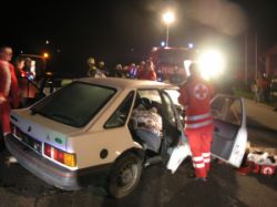 Die Einsatzkräfte beim Bergen von Verletzten beim Verkehrsunfall