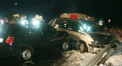 LACKEN: Ein in Richtung Rohrbach fahrender PKW kam in einer Kurve auf Höhe Bahnhaltestelle Lacken auf schneeglatter Fahrbahn ins Schleudern und geriet auf die Gegenfahrbahn. Ein in Richtung Linz fahrendes Auto konnte nicht mehr rechtzeitig ausweichen und rammte den schleudernden PKW seitlich. Beide Fahrzeuge prallten anschließend gegen die Leitplanke. Bei diesem Zusammenstoss wurden 6 Personen unbestimmten Grades verletzt.