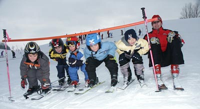 NEBELBERG. An die 40ig Kinder tummeln sich am Übungshang und lernen in den