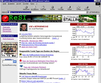 Unter der Internetadresse http://investor.resi.at können Interessierte täglich aktuelle Anleger- und Börseninformationen von regionalen Banken und Informationsanbietern abrufen.