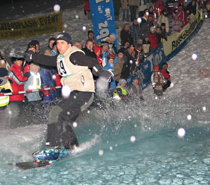 Den Sieg im Waterslide Bewerb holte sich David Pachner aus Götzendorf. In der Sonderklasse waren wilde Gefährte am Start. Der schwimmenden Jackyflasche, mit welcher das Jackyteam Mistelberg am Start war, gelang es nach anfänglichen Ausritt in die Zuschauermenge am Ende doch noch, das 15 m lange Becken zu überqueren. Den Piloten der anderen Gefährte, darunter ein Riesenschlitten aus Heinrichsberg, das Badewannengefährt der FF Hinterschiffl, der Sesselbob der JG Unterweiterdorf und das gleitende Schlafzimmer der JG Nebelberg, blieb die kalte Wasserdusche nicht erspart.