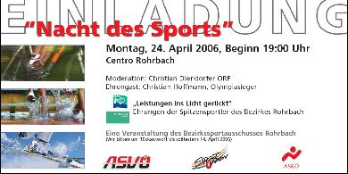 Am 24. April 2006 veranstaltet der Bezirkssportausschuss Rohrbach die "Nacht des Sports".
