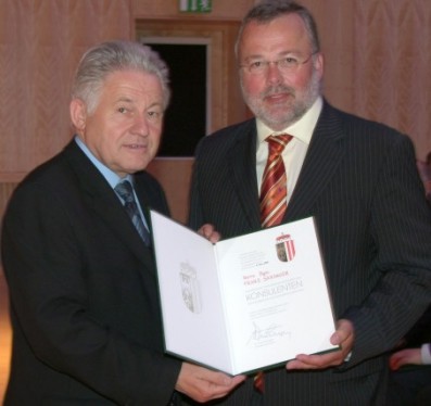 Die Marktgemeinde Kollerschlag kann sich über die Konsulentenwürde ihres Bürgermeisters freuen. Franz Saxinger erhielt in einer Feierstunde im Ursulinenhof in Linz aus den Händen des Landeshauptmannes Josef Pühringer die Urkunde und somit den Titel „Konsulent für Volksbildung und Heimatpflege“ überreicht.