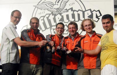 v.l.n.r.: Peter Krammer (Brauerei Hofstetten), Fritz Schaubschläger, Martin Oberpeilsteiner, Peter Pühringer, Wolfgang Hofer (alle vom Urwaldteam) und Elmar Porod (Werbeagentur „artifact“)