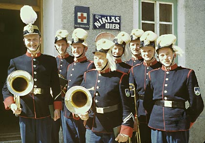 Nicht nur alte Fotos sind am 30.9.2006 in Hofkirchen i.M. gefragt, sondern besonders auch die Personen, die auf alten Fotos zu sehen sind, wie z.B. auf dieser über 40 Jahre alten Aufnahme einer Musikergruppe aus Hofkirchen i.M. v.l.n.R.: August Lepschi, Roman Mairhofer, Hubert Neissl, Johann Derschl, Franz Leitenbauer, Berthold Bumberger, Leopold Raab und August Neundlinger
