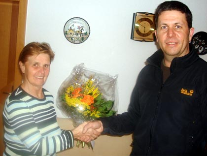 HOFKIRCHEN: TSU-Obmann Hannes Nösslböck bedankte sich bei Veronika Ensinger, die 33 Jahre (!!!) lang die Dressen der Hofkirchner Fußballer, angefangen von den Miniknaben bis zur Kampfmannschaft reinigte und nun ihre verdienstvolle Tätigkeit beendete.