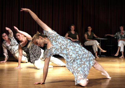 Foto: Pölzl - Sandra Hofstötter, Johannes Kaser, Murielle Klaus, Karin Schauppenlehner und Angela Wertgarner tanzen unter der Regie von Hertha G. Müllegger am 25. April in Wesenufer eine Geschichte über das Warten, die Sehnsucht und die Hoffnung.
