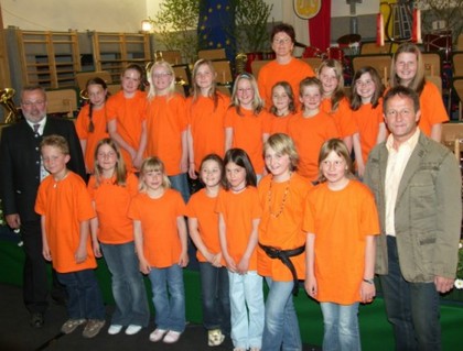 Obmann Willi Ecker und Kapellmeister Alfred Hofmann freuten sich nicht nur über das tolle Publikumsinteresse für das Konzert, sondern auch über dessen jüngstes Kind, die „Flötenkids“. Sie nützten die Gelegenheit Kostproben aus ihrem Repertoire zu bieten und ernteten dafür prompt viel Applaus.