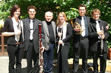 Magdalena Bauer (Oboe), Michael Hinterreiter (Fagott), Ensemble-Leiter Prof. Alexander Varga von der Anton Bruckner Privatuniversität, Kathrin Stoiber (Querflöte), Klaus Leherbauer (Horn) und Herbert Hackl (Klarinette)