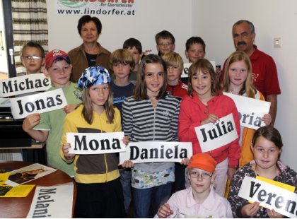 PFARRKIRCHEN: Bereits zum fünften Mal lud die Werbeagentur Lindorfer Schüler der Volksschule Pfarrkirchen zu einem Betriebsbesuch ein. Interessiert beobachteten die Viertklassler die Entstehung ihrer eigenen Visitenkarten am Computer, bei deren Gestaltung sie selbst mitwirken durften. Außerdem zeigte Firmenchef Karl Lindorfer, wie Bilder durch Retuschen und Einfügen von Grafikelementen und Fotos verändert werden können. Der Spaß kam dabei nicht zu kurz, als in lustige Affen- oder Löwenbilder Kindergesichter eingefügt wurden. Zum Abschluss durften die Kinder einen Schriftzug für ihren eigenen Namen auswählen, der dann auf eine Beschriftungsfolie übertragen wurde. Gespannt verfolgten die Schüler das Ausschneiden auf dem Schneideplotter, das Entgittern des Schriftzuges und das Endfertigen mit der Übertragungsfolie. Groß war die Freude, als die fertigen Visitenkarten, die lustigen Bilder und der große Schriftzug des eigenen Namens als Geschenk mit nach Hause genommen werden konnten. Der einhellige Kommentar der Schulklasse: Dieser Sachkundeunterricht war super!