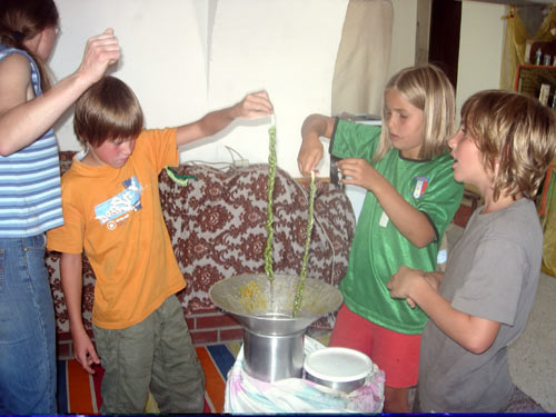LEMBACH - ST. JOHANN AM WIMBERG (12.08.2008) - In einem interessanten Workshop konnten 32 Mädchen und Buben sich in der Kunst des Kerzenziehens und Gestaltens versuchen. Da der Andrang sehr groß war, wurden die Kinder in zwei Gruppen geteilt.