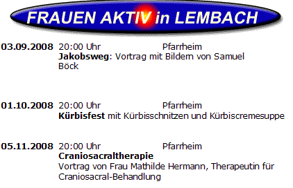 nächsten Veranstaltungen hinweisen und alle Frauen herzlich einladen: