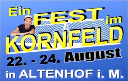 Ein Fest im Kornfeld in Altenhof Zum Fest im Kornfeld von 22. – 24. Aug. 2008 in Altenhof i. M. laden wir Sie recht herzlich ein.