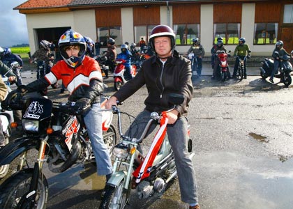 NR Dr. Reinhold Mitterlehner an der Spitze der längsten Mopedschlange!