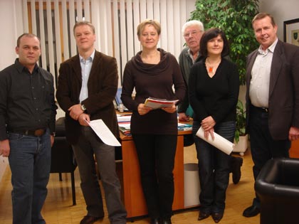 Das Projektteam „Familienaudit“ setzt auf Familienfreundlichkeit in Kleinzell. vl. Peter Wakolbinger, DI Christian Pühringer, Projektleiterin u. Familienbeauftragte Roswitha Öhler, Hermann Kastner, Schriftführerin Irmgard Lepschy sowie Bürgermeister Franz Hofer.