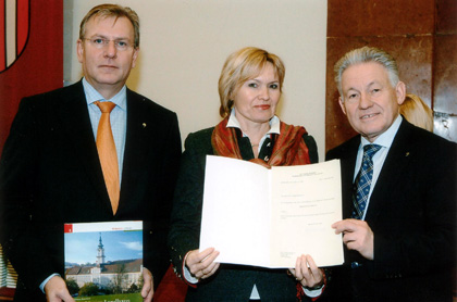OBERKAPPEL: m Rahmen eines Festaktes wurde an die langjährige Leiterin der Volksschule Oberkappel Frau Direktorin Marianne Pöschl, durch LH Dr. Josef Pühringer das Dekret über den vom Herrn Bundespräsidenten verliehene Berufstitel “Oberschulrat” überreicht.