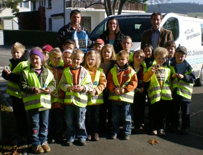HOFKIRCHEN: Der OÖ Zivilschutzverband rüstet jedes Jahr zu Schulbeginn die ersten Klassen der Volksschulen mit rückstrahlenden signalfarbenen Warnwesten aus. Damit die Nachhaltigkeit der Aktion jedenfalls gewährleistet ist, führt unser Zivilschutz-Gebietsbeauftragter, Herr Josef Lindner (ÖVP-Vizebürgermeister der Gemeinde Naarn), immer wieder unangesagte Kontrollen in den Volksschulen durch. Erfreulicherweise konnte Herr Lindner bei so einer unverhofften Kontrolle in Hofkirchen i.M. gemeinsam mit Bgm. Martin Raab feststellen, dass ausnahmslos alle SchülerInnen der ersten Klasse ihre Warnwesten am Schulweg tragen. „Da sind die Hofkirchner SchülerInnen vorbildhaft“ freute sich Josef Lindner. Unseren Taferlklasslern brachte ihr tolles Verhalten zusätzlich eine schöne Belohnung vom Zivilschutzverband. „In manchen Schulen muss leider sogar festgestellt werden, dass nur drei von zehn SchülerInnen die Warnwesten am Schulweg tragen. Selbstverständlich sind auch die Lehrkräfte und die Eltern besonders gefordert, ihre SchülerInnen in Sachen Verkehrssicherheit gut aufzuklären“ betonte Josef Lindner. „In Hofkirchen i.M. trifft das offensichtlich in hohem Maße zu“, freute sich auch Bgm. Martin Raab, „herzliche Gratulation unseren SchülerInnen, der Klassenlehrerin Sabine Reisinger und allen Eltern!“