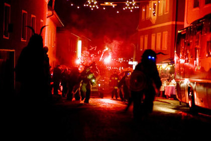Den Höhepunkt des diesjährigen Weihnachtsmarktes bildete wiederum der Auftritt der höllischen Perchten aus dem Salzkammergut. Diese zogen mit einem brennenden Teufelswagen durch den Markt, sodass die Hausfassaden in glühendem Feuer-Rot erstrahlten. Wilde Fratzen mit langen Hörnern durchkämmten den historischen Marktkern von Hofkirchen i.M. und stöberten wild durch die Zuschauermassen. Großer Respekt war dabei von vielen Gesichtern abzulesen. Aber auch Bischof Nikolaus war mit schönen Engelsgestalten mitgekommen und verteilte seine Gaben an die vielen Kinder.