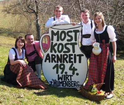 Nach dem tollen Erfolg vom Vorjahr, veranstaltet die Landjugend Arnreit auch heuer eine Mostkost beim Wirt z`Humenberg am 19.April 2009 ab 13 Uhr.