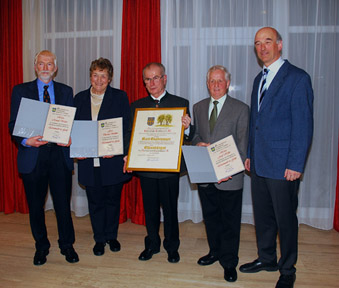 v.l.:OSR Reinalt Walter, Theresia Winkler, Ehrenbürger Karl Ensbrunner, Josef Höfler, Bgm. Herbert Kumpfmüller