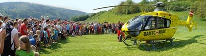 Eine Menschenmenge belagert den ÖAMTC-Hubschrauber