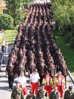Insgesamt 25 Feuerwehren aus den Bezirken Urfahr-Umgebung, Rohrbach, Eferding, Linz-Land und Linz erwiesen der Freiwilligen Feuerwehr Landshaag an diesem Tag die Ehre. Sie sorgten mit einem feierlichen und symbolträchtigen Einmarsch vom alten, nun ausgedienten Feuerwehrdepot zum neuen Feuerwehrhaus für Aufsehen.