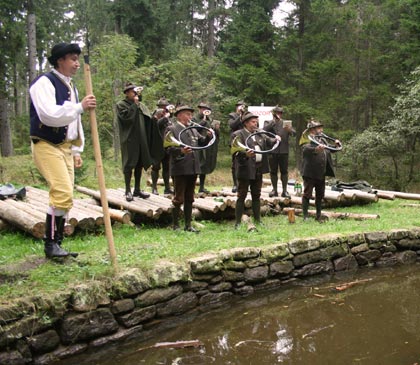 Waldarbeit von anno dazumal. Um 13:30 Uhr sorgen die Jagdhornbläser Böhmerwald und die