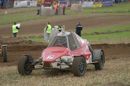 Anders erging es dem Clubkollegen Franz Kehrer. Er hatte sich nach dem samstägigen Freien Training eigentlich einiges für das Rennen ausgerechnet; es sollte aber anders kommen. Franz, nachdem er im Zeittraining Platz sechs belegte: „Ich bin einfach zu vorsichtig gefahren und habe dabei wertvolle Zeit liegen lassen.“ Im ersten Vorlauf sollte es dann passieren. Franz gelang ein super Start und konnte nach der ersten Kurve noch zwei Plätze gut machen. Dann wollte er einfach zu viel und kam beim dritten Konkurrenten auch noch vorbei. Franz streifte dabei mit seinem 300PS starken Rotax Buggy einen Erdwahl und überschlug sich dabei mehrmals. Kehrer konnte Gott sei Dank den stark ramponierten Boliden unverletzt verlassen, musste aber für den Rest des Tages die Segel streichen. Franz nach der Bergung des Buggy´s: „Ich wollte einfach zuviel auf einmal. Es war mein Fehler und freue mich nur das ich unverletzt bin.“