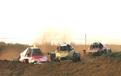 ST.MARTIN: Albin Scheuchenpflug der unbedingt Punkte in der Gesamtwertung gut machen muss, damit er seine Titelchancen wahren kann, hatte seinen Boliden top vorbereitet und ideal für diesen Lauf abgestimmt. Schon im samstägigen Freien Training zeigte er, dass ein Sieg nur über ihn und seinen 320PS starken Lancia Buggy führen wird. Im Zeittraining drehte er seine Runden voll konzentriert und konnte sich so die Poleposition sichern. Im ersten und zweiten Vorlauf konnte er einen sicheren Start–Ziel Sieg einfahren und wichtige Punkte auf seinen Konkurrenten aufholen und ihn sogar in der Wertung überholen. Im Finallauf setzte sich Albin wiederum nach dem Start an die Spitze des stark belegten Starterfeldes und konnte sich sogar deutlich von der Konkurrenz absetzen. Drei Runden vor Ende des Rennens brach plötzlich an seinem Boliden beim Schaltautomaten ein Gelenk für den 3. Gang. Scheuchenpflug reagierte geistesgegenwärtig und schaltete sofort in das Notprogramm seines Automatikgetriebes, was ihn aber auf Platz zwei zurück warf. Eine Runde später erbte er den 1. Platz nach dem Ausfall des Führenden und konnte sich so den Sieg sichern. Albin nach dem Rennen: „Es ist verdammt eng hergegangen. Ich wusste nach dem Ausfall des 3. Ganges, dass mein Teamkollege Franz Kehrer hinter mir ist und er mir den Konkurrenten um den Titel vom Hals halten wird. Ich möchte mich bei ihm bedanken, da ich sonst wahrscheinlich nicht als Sieger hier stehen würde. Ich freue mich unheimlich, dass ich jetzt als Führender in den letzten und alles entscheidenden Lauf am 11. Oktober in Hollabrunn starten kann.“