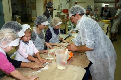 Kinder beim Lebkuchenbacken in der Backstube Bio-Hofbäckerei Mauracher