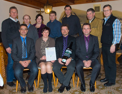 v.li.n.re. stehend: Gemeinderat BMST Josef Lauß, Gemeinderat und ÖVP-Obmannstellv. Dipl.-Ing. Johann Scharinger, Gemeinderätin Carmen Wurm, Fraktionsobmann GR Johann Zöchbauer, Pfarrer Dechant KsR Laurenz Neumüller, Altbürgermeister und Ehrenbürger ÖkonR. Josef Märzinger, ÖVP-Obmann Vbgm. Heinrich Pfoser;