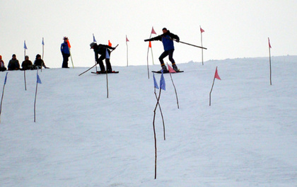 Selbst geübte Skifahrer hatten so ihre Schwierigkeiten mit den 2 Brettern ...