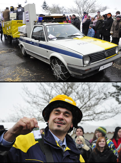 Unsere POL/POST war natürlich auch unterwegs, verteilte aber zum Glück keine Strafzetteln, sondern Jägermeister und Prospekte ...